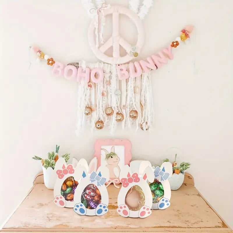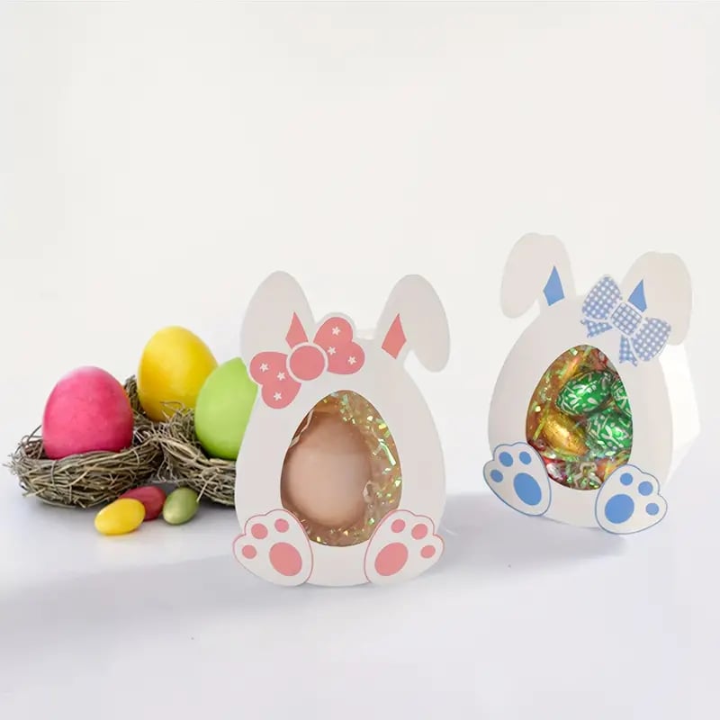 Designed with bunny and egg elements and paired with a transparent window, it looks very cute and suitable for Easter parties, adding a joyful holiday atmosphere.