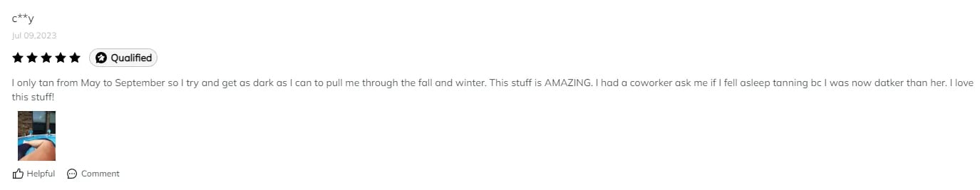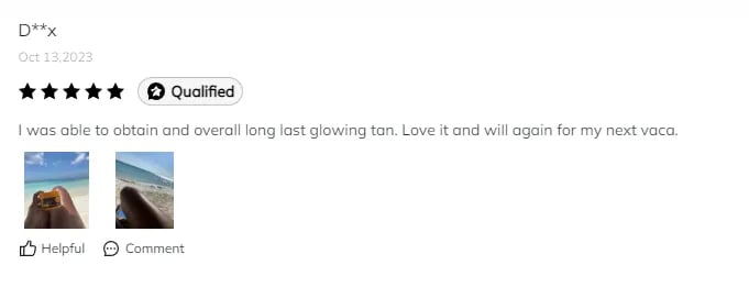“ I was able to obtain an overall long-lasting glowing tan. Love it and will again for my next vacation.” ————— Dana Alex 2023.10.13