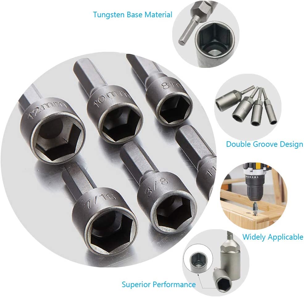 11/32(8. 73mm), 3/8(9. 53mm), 7/16(11.11mm) - Fits All Power Drills, Screwguns, Cordless & Magnetic Drivers Sandblasted