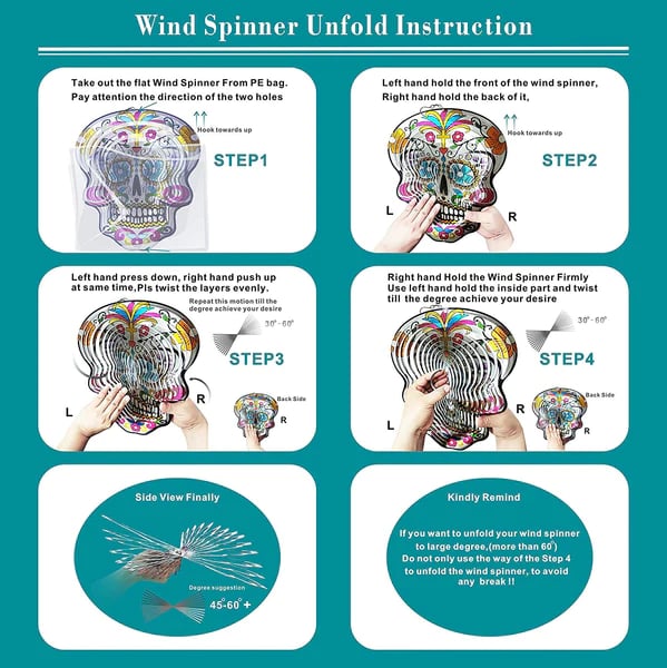 Easy to installIncludes a swivel hanging hook so wind spinner can twirl in the breeze. Wind spinners are easy to open to angle you desire and conveniently hang up wherever you like to